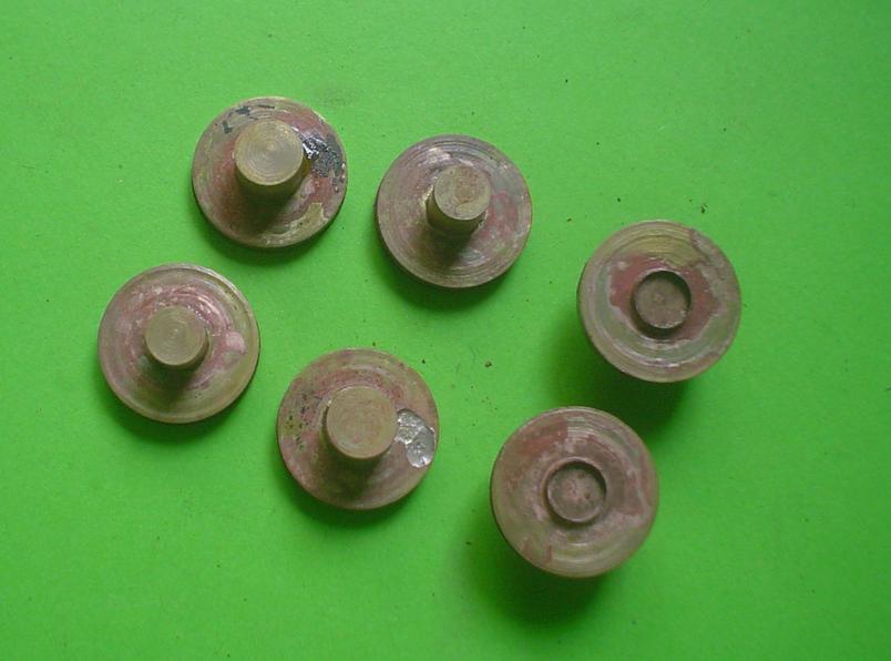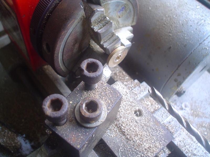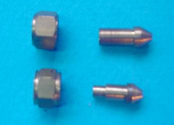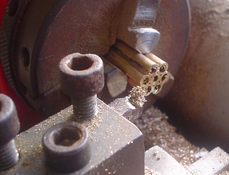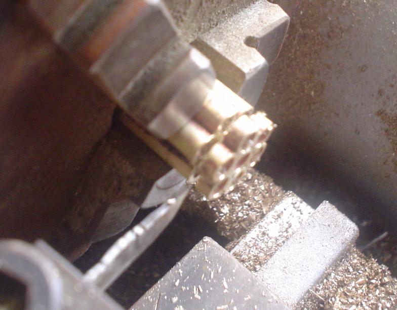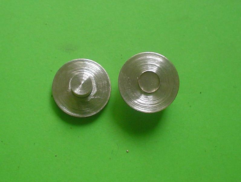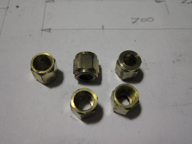 |  | | les brises terminées après perçage et filetage : la première est serrée sur sa rondelle de téflon |