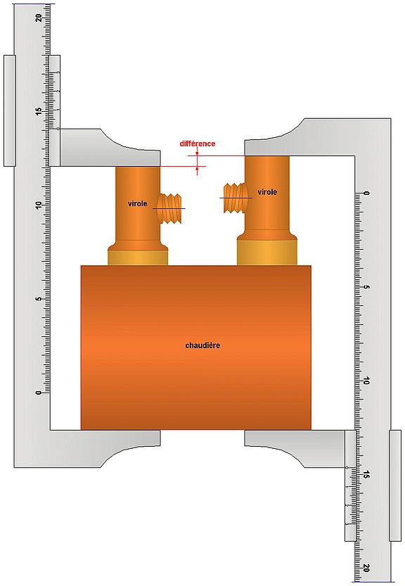 Malgré les précautions prises au positionnement avant la brasure, il peut se produire un léger décalage entre les surfaces d'appui de la virole et de l'accessoire. Avec un cas extrême qui est celui de l'inversion du repère !
