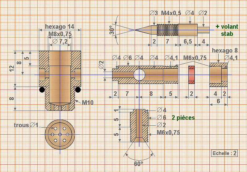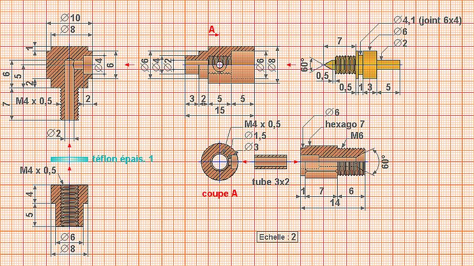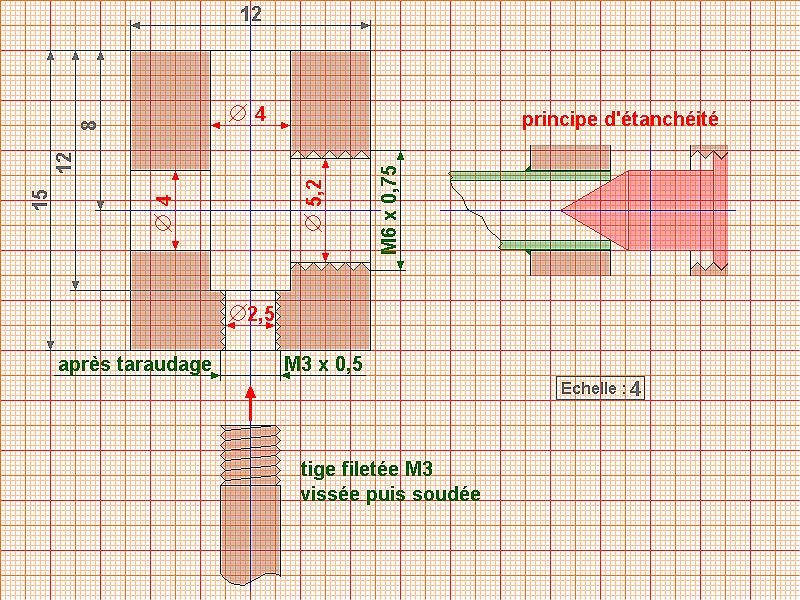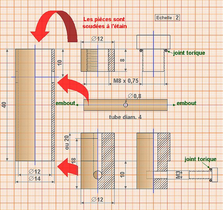 |  | | rond de l'autre côté, brasure, sciage, reprise au tour puis à la fraise, taraudage, perçage et brasure du tube préalablement percé à 0.5 ou 0.8 ... |