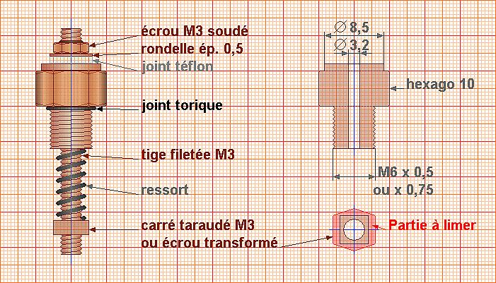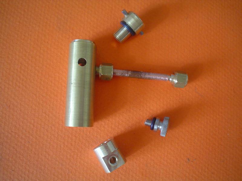| Si on rencontre des problèmes d'étanchéité, on peut utiliser le petit truc découvert récemment en plaçant un tube de cuivre qui viendra au contact du pointeau : voir la dernière vanne vapeur décrite dans | |