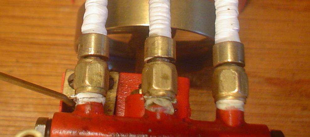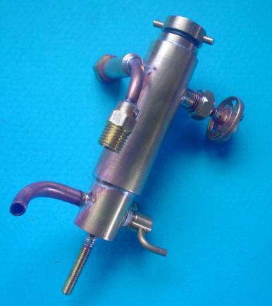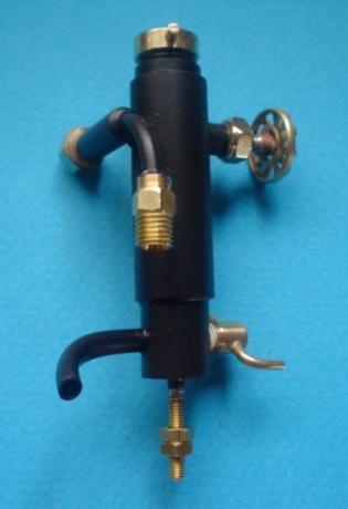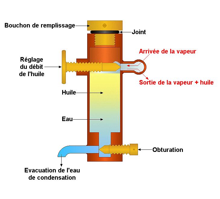 |  | | Il s'agit en fait d'un simple tube. La vapeur en passant par la tuyauterie d'arrivée va prélever un peu d'huile par le trou de 0.8. L'huile sera peu à peu remplacée par de la vapeur qui va se condenser, descendre au fond du tube et faire remonter le niveau d'huile ... très simple mais fonctionnel ! |