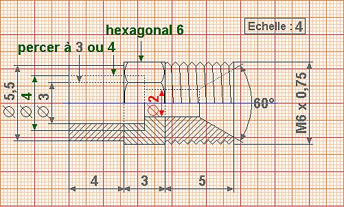 |  | guide de la vis au diamètre 6 fraise de diamètre 6 après perçage à 5.8 |