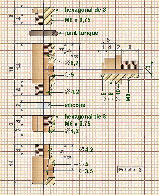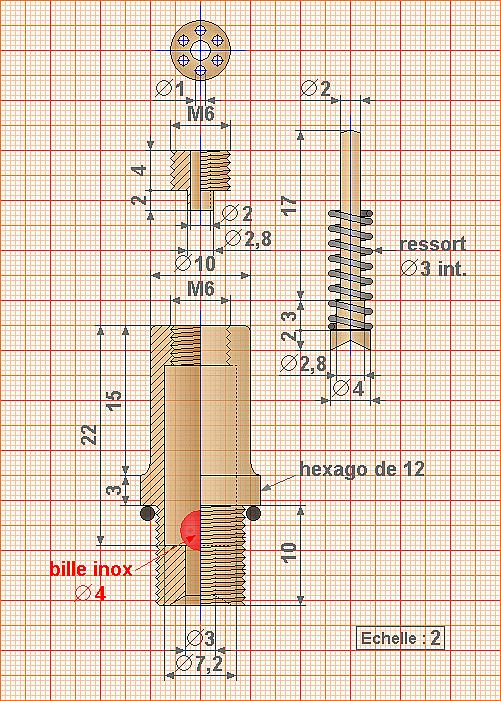 9 - une soupape : maximum 2 barsMatériaux : . hexagonal de 12, rond de 6 et de 2; une bille inox de diamètre 4