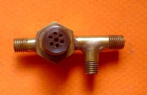 |  Pour la soudure (étain dans mon cas), positionner toutes les pièces en enlevant le volant et sa tige fileté et les bouchons. Chauffer la pièce en totalité et amener point par point le fil d'étain. |