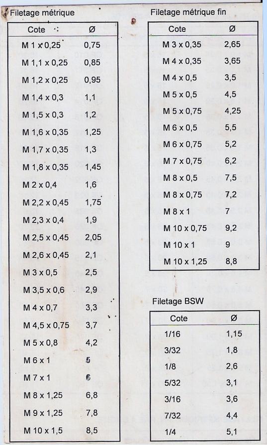 |  | |  | | perçage avant taraudage | | diamètre de perçage en fonction du taraud |  |