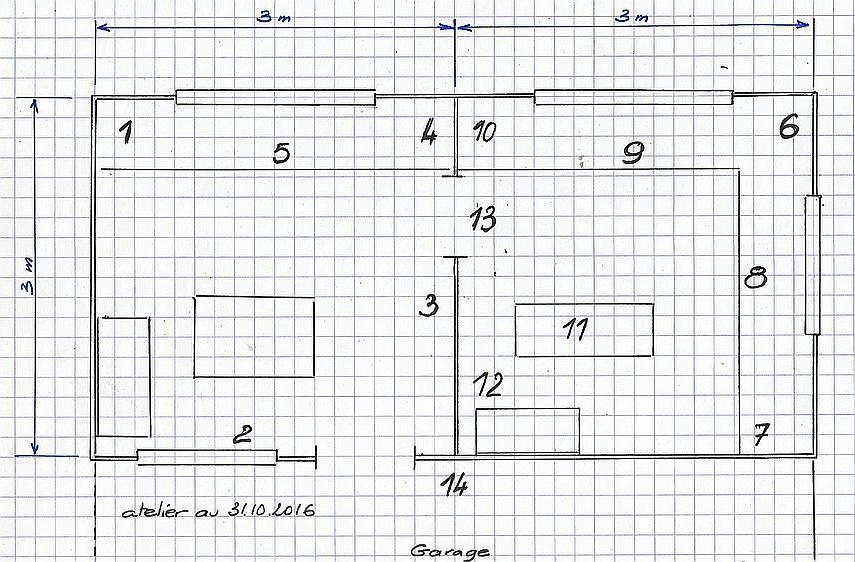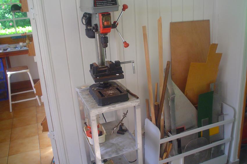 | | 3 - perceuse à colonne, rangement tôles, tubes, bois |