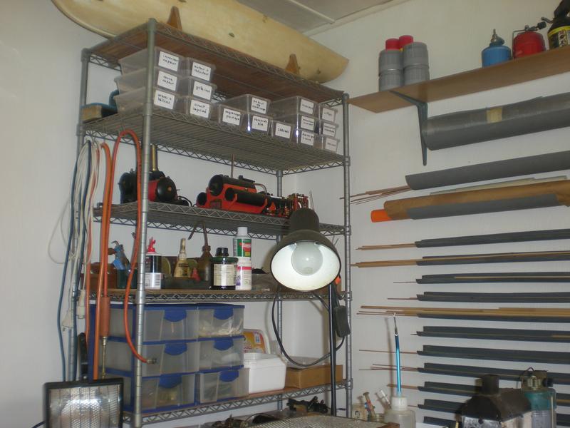 A côté, un bricolage sur roulettes permettant de stocker le contreplaqué, les plaques d'alu, quelques profilés ... |
