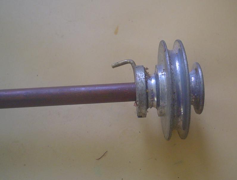 Récupération des poulies de l'arbre moteur : tube de cuivre de 8 mm qui entre parfaitement, trou pour une clavette improvisée. |