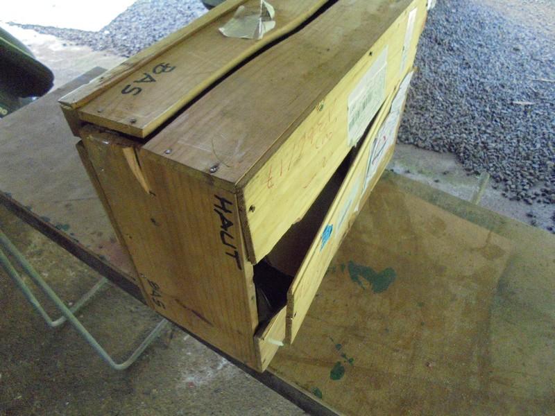 Grosse frayeur en recevant les deux caisses préparées par mon gendre : les colis ont été éclatés au départ de la France ! Quel soin apporté par nos postiers de Colissimo !!!!! |