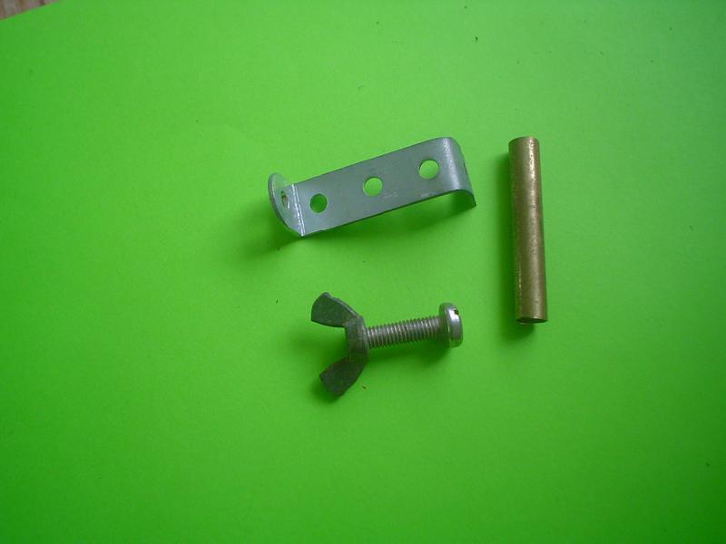| un tube, une équerre (pièce de meccano modifiée), une vis M5 avec écrou papillon ... il manque la rondelle ! |