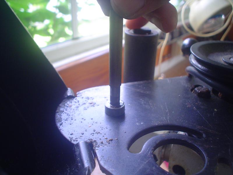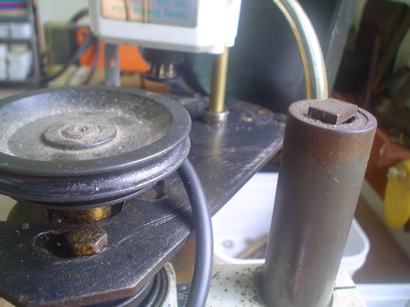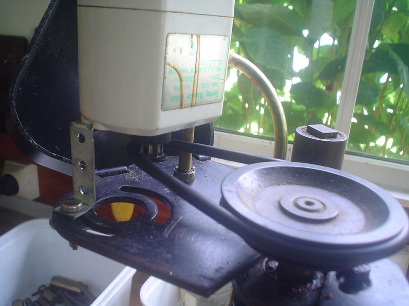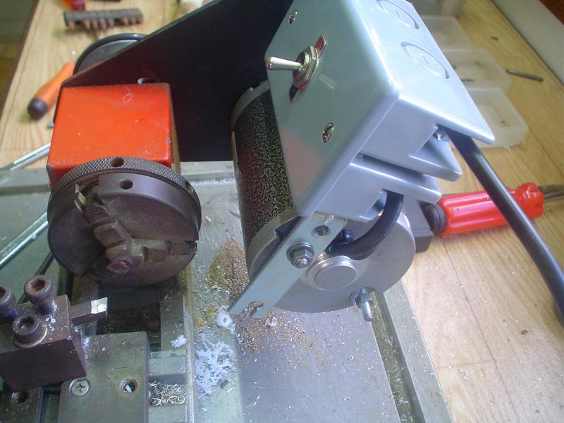 dépannage du tour | Bien triste journée, mon nouveau tour donne déjà des signes de faiblesse : plus de puissance et il est devenu presque impossible de percer au-dessus du diamètre 4 ... Les causes ? Patrick m'a bien donné quelques pistes, mais, en attendant, et de peur de me retrouver sans moteur une fois de plus, un petit bricolage au cas où ...
