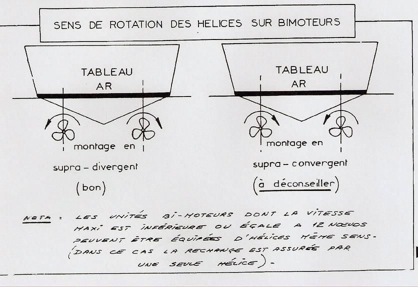 |  pas à gauche et pas à droite d'une hélice | Si on en monte une seule, elle peut être "à droite" : elle tourne dans le sens horaire en marche avant ; ou "à gauche" qui tournera dans le sens inverse. Par contre, si on en installe deux, elles doivent être de pas contraire pour contrer l'effet de couple.
