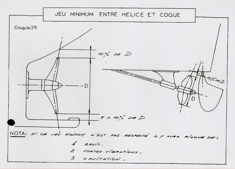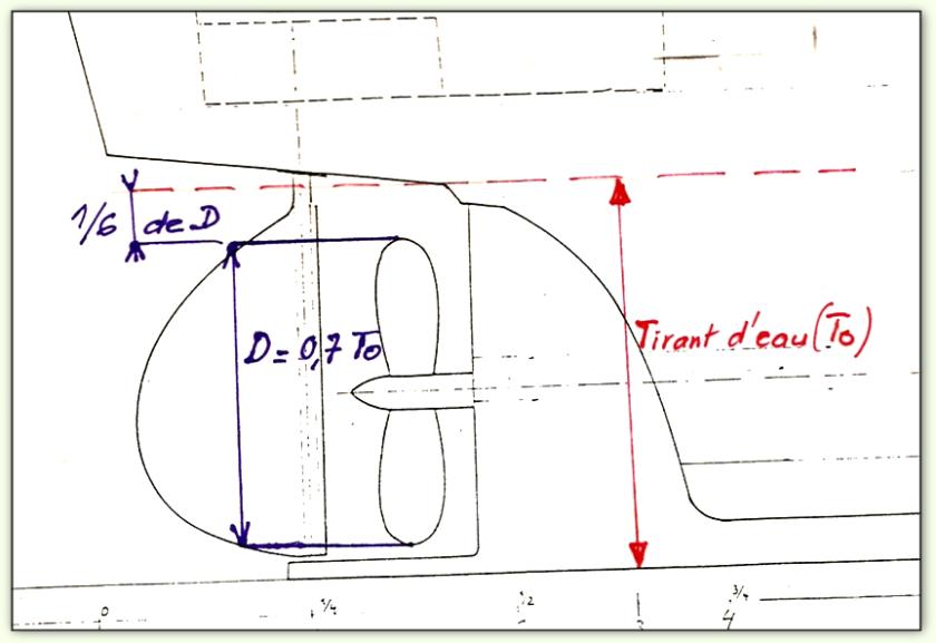 | Sur ce croquis qui représente l'arrière de la chaloupe de Bernard Rétif, To = 66 mm et le diamètre de l"hélice devrait être de To . 0.7 = 66 . 0.7 = 46