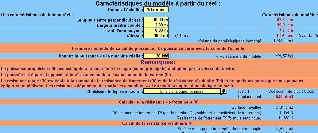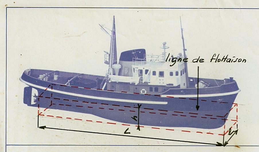 Et pour cet exemple, le poids ou déplacement du modèle, s'il s'agit d'un remorqueur, sera de : 15 . 0.50 = 7.5 kg