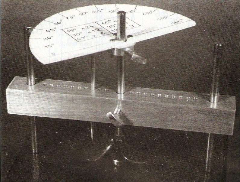 . Le meilleur document trouvé pour la construction d'une hélice : un pas à pas (et pale à pale) de Jean-Pierre PHILIPPE paru dans le numéro 301 d'octobre 1988 de MRB. Une méthodologie, un outillage spécifique et des instruments de mesure dont celui déjà montré précédemment. |