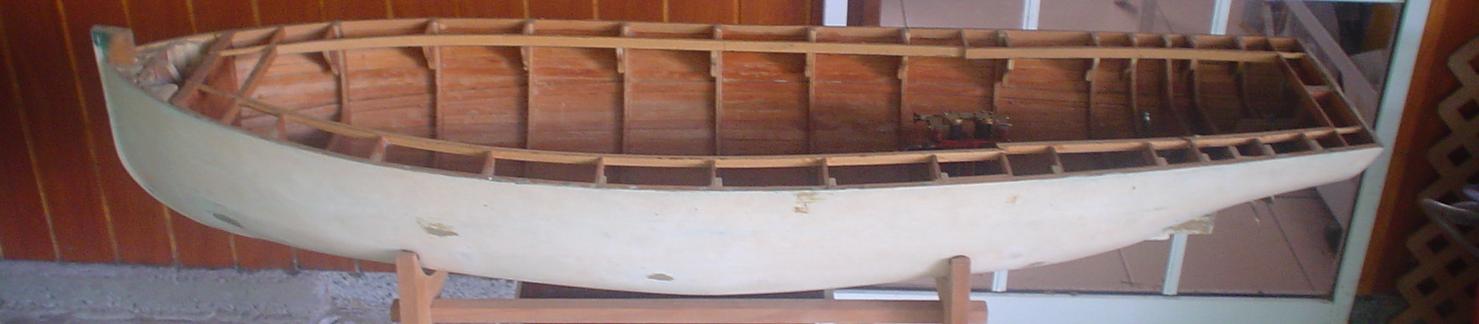 Pour cette chaloupe, on peut appliquer un coefficient de finesse de 0.40 car elle fait plus de 1 m de longueur pour 14.5 cm seulement au maître bau. |