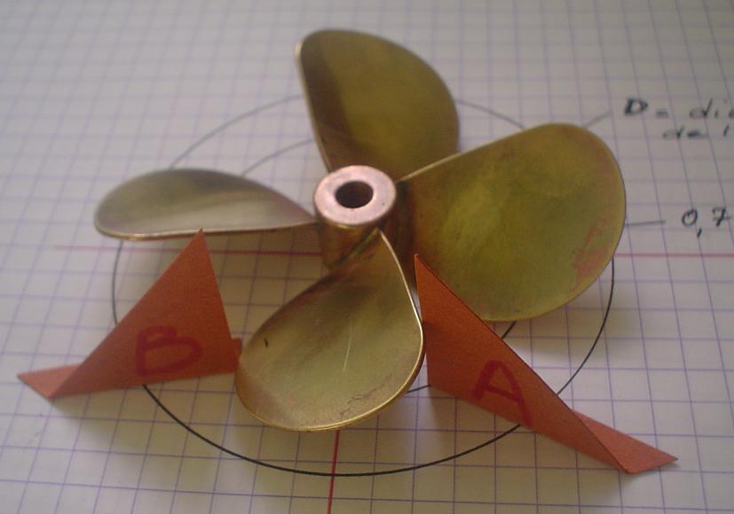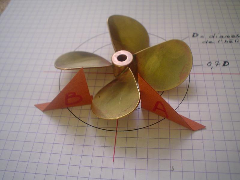 La mailleure solution en modélisme semble d'adopter une hélice à 4 pales, les "turbulences de l'eau n'agissant que sur 2 pales à la fois. |