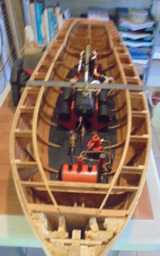 avec la construction de la machinerie complète, une machinerie qui fonctionne parfaitement. Cependant l'ensemble est devenu trop pesant pour moi et cette embarcation ne rejoindra pas le lagon, dommage de voir cette coque et sa machinerie rester sur une étagère. Mais je me suis fait bien plaisir. La construction de la machinerie avec tous les plans est disponible dans cet |  |