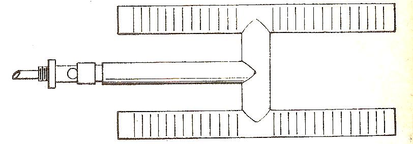La partie centrale qui permet de joindre les deux rampes et le tube raccordé au porte gicleur, tube qui sera lui aussi de 6 x 8. On voit nettement la réduction à 7 et la forme spéciale donnée à la lime : si on a des difficultés à entrer cette pièces dans l'autre, cela proviendra probablement de la profondeur du trou de 7. Dans la mesure du possible faire en sorte que l'ajustage soit serré pour le maintien pendant la brasure. |