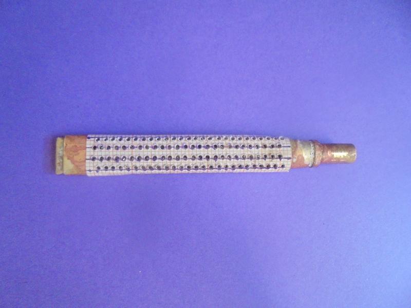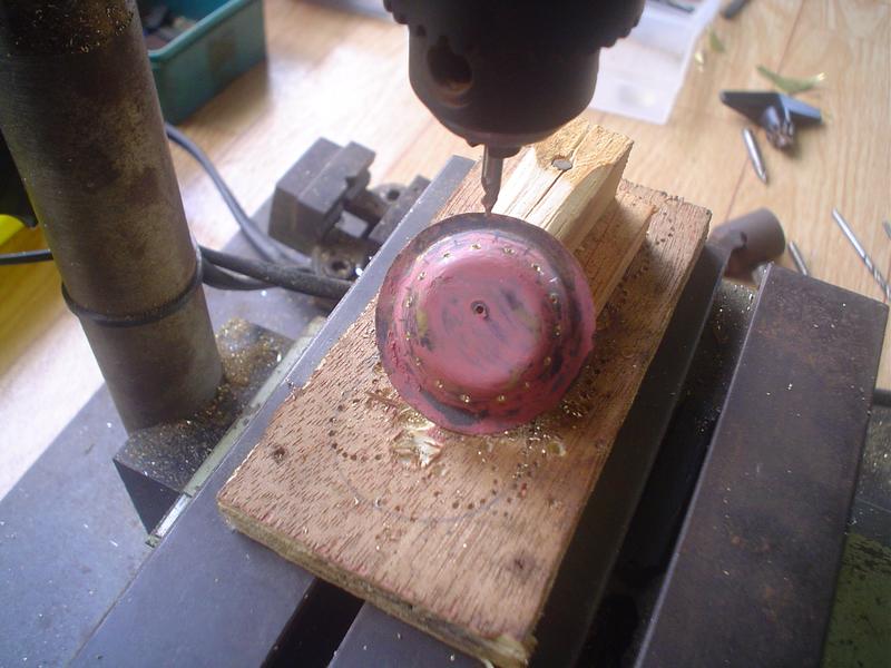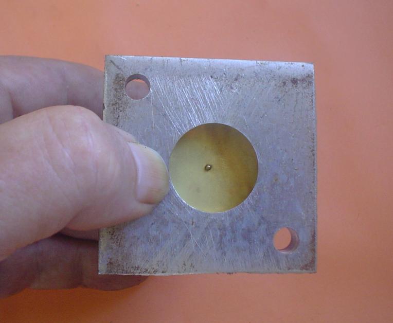 Le poinçon est terminé. Percer un trou de 1 pour le centrage du disque de laiton . Cette méthode sera ensuite abandonnée. |