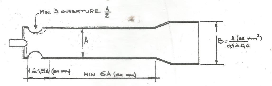 Si on regarde le premier croquis, une des cotes principale est celle de la longueur du tube mélangeur qui doit être égal à environ 6 fois le diamètre intérieur du tube. |