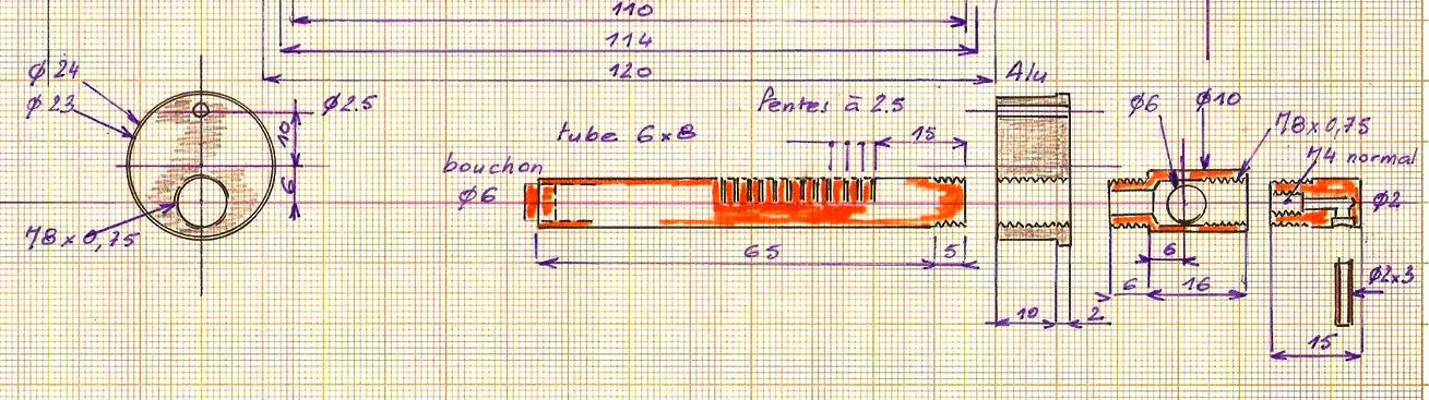 Il est vrai qu'une chose n'est pas respectée : l'épaisseur du tube qui devrait être de 1 mm pour éviter le risque d'un retour de flamme. Mais quand on veut miniaturiser ...