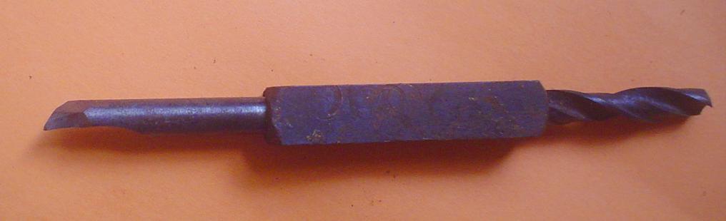 | Le porte-foret est un carré fendu. J'aurai l'occasion de revenir sur la fabrication de ces outils bien pratiques. |
