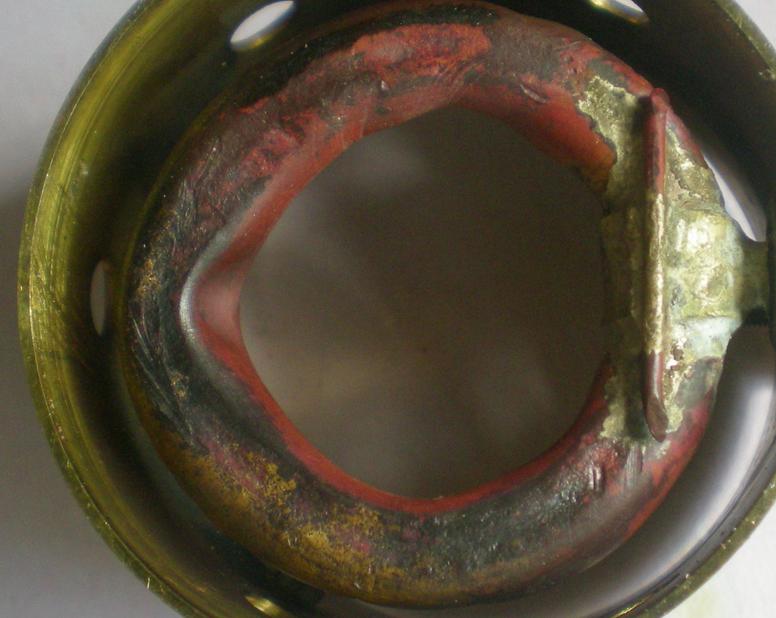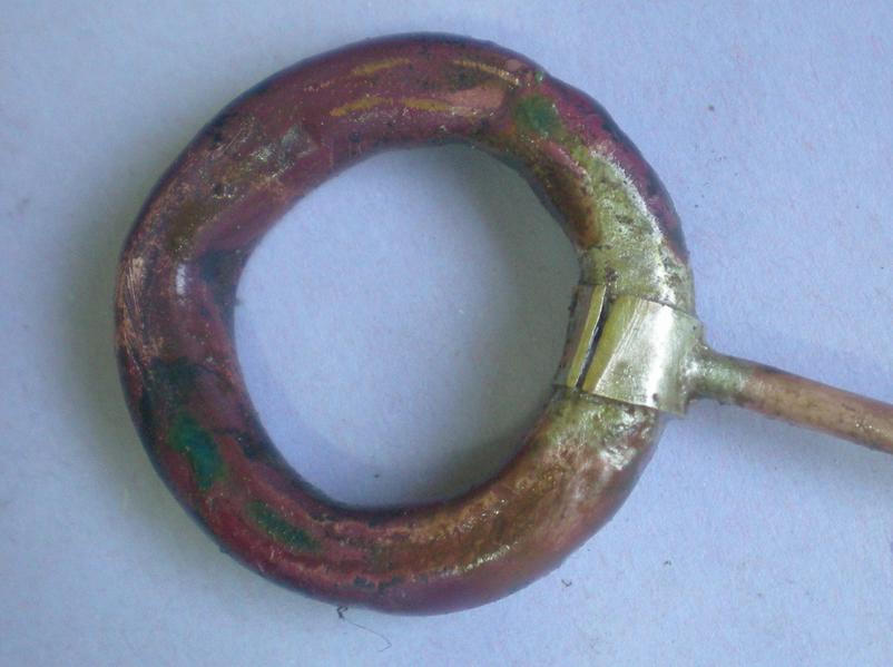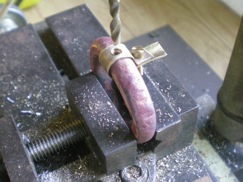 | Et, comme de bien entendu, la brasure à l'argent qui n'aime pas le vide ne s'étale pas partout ... Nettoyage, limage pour placer un rond de laiton de 1 mm de diamètre.