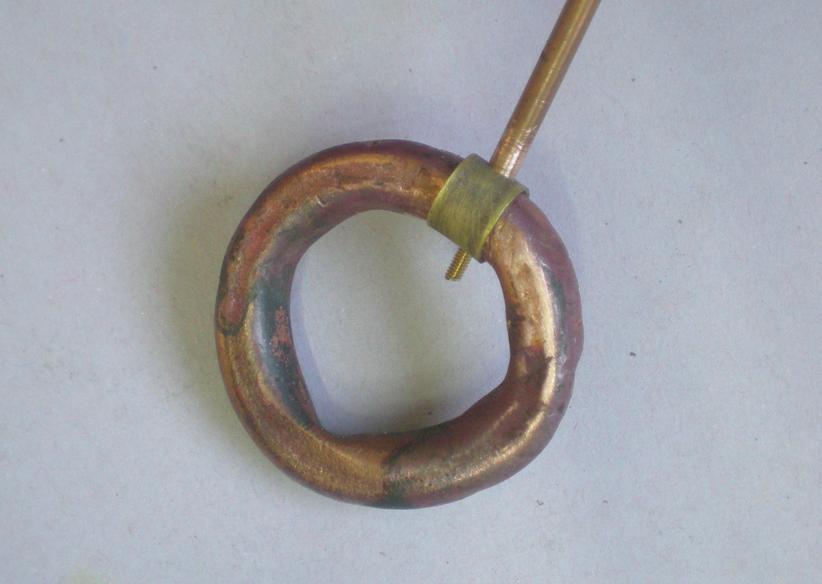 Ce brûleur prend la forme d'un anneau en tube de cuivre de 6 x 8 pour cette verticale : diamètre extérieur de 40 et diamètre intérieur d'environ 24.