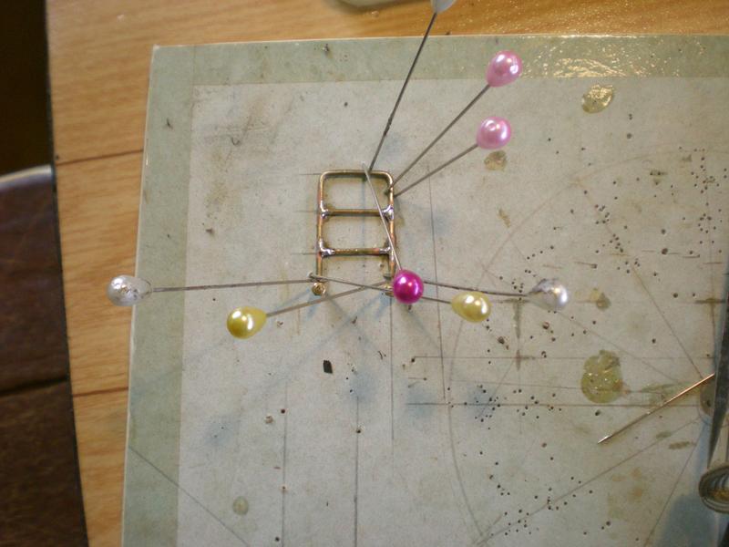 J'ai commencé par elle car je n'en ai pas trouvé dans le commerce. On part de clinquant de laiton de 1/10ème qu'on enroule après recuit dur un rond de 1 mm de diamètre. On y arrive presque avec les doigts.