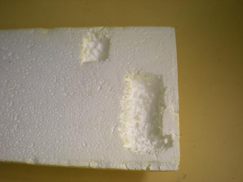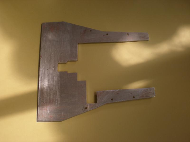 Pour dissimuler le plateau arrière, une plaque de poly -truc qui se façonne bien au cutter et qu'on peur poncer. Découpe pour le réservoir de gaz et la vanne.