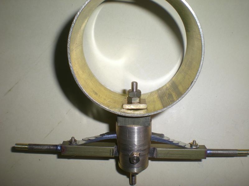 Pour obtenir un pivot fonctionnel, il faudra 4 pièces : . un carré de 14 qui recevra l'axe et dont une face est rendue courbe pour plaquer lors de la soudure sur le corps de la boîte à fumée . un pivot tiré d'un rond de 16 qui recevra les lames de ressort et l'essieu . une base vissée prolongée (soudure) d'un rond qui viendra se placer dans ... . ...un guide qui sera rendu solidaire du bâti par un raidisseur.
