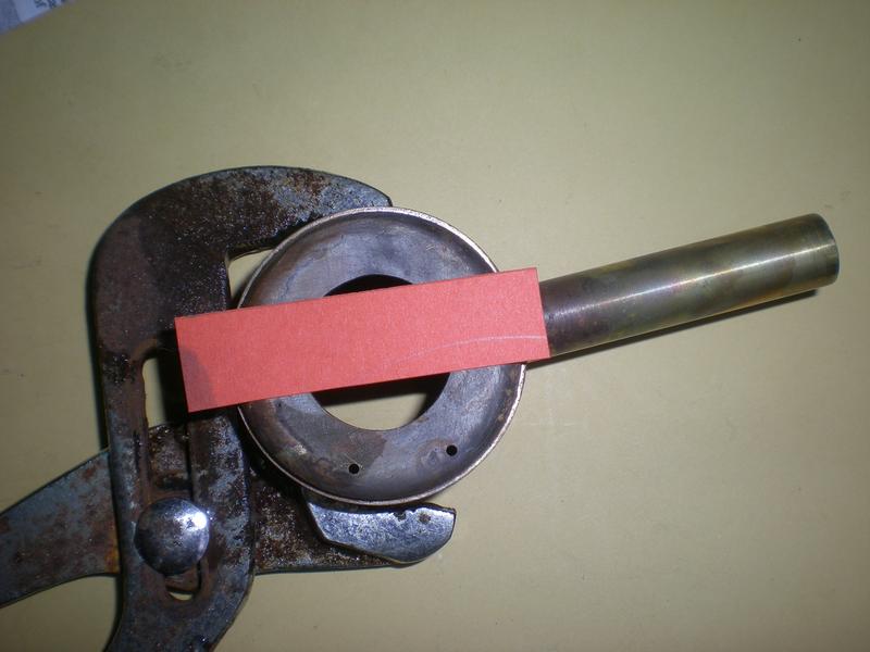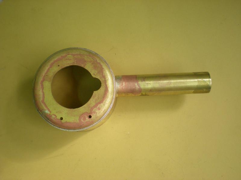 ... comme ceci (Tout m'arrive !) , on place la cheminée dans un étau, on chauffe jusqu'à ce que la brasure commence à fondre et on redresse avec une grosse pince serrant le corps. Ouf ! |