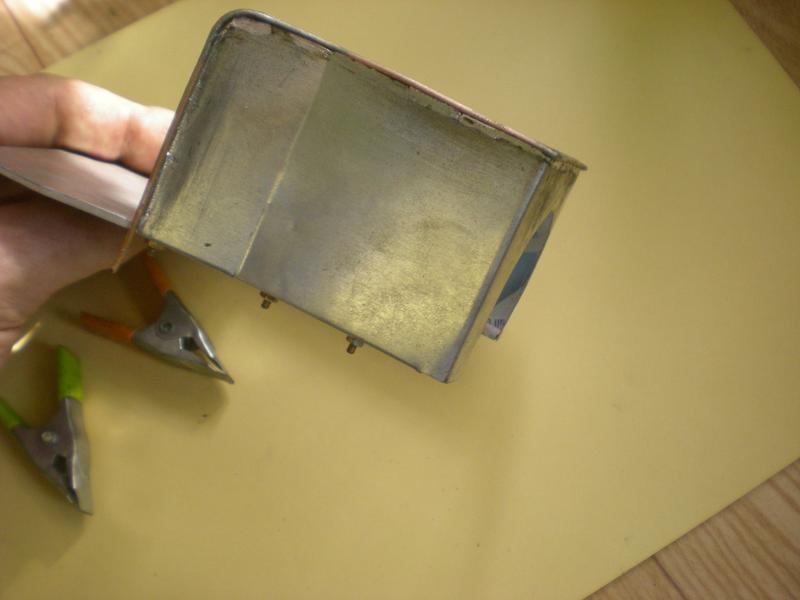 boîtier porte piles et récepteur | Une fabrication en tôle et ce sont les pliages qui assurent le maintien des côtés mais on peut utiliser du contreplaqué. |