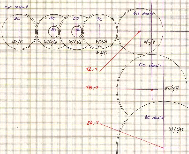 Selon la roue dentée installée sur l'axe des roues on obtiendra des rapports différents.
