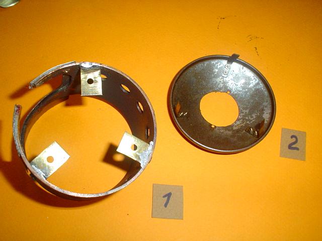 |  | Les dessous : 1 : pattes pour la fixation de la couronne basse 2 : pattes pour le positionnement "élastique" du chapeau et trous pour fixer la cheminée |