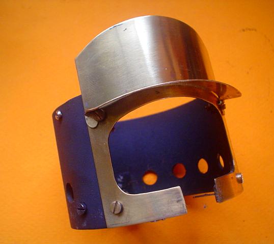 | | Une casquette pour, éventuellement, contenir les flammes si on pusse un peu trop l'arrivée de gaz. Fixation par deux vis se plaçant dans les encoches. |