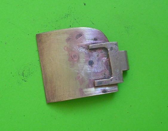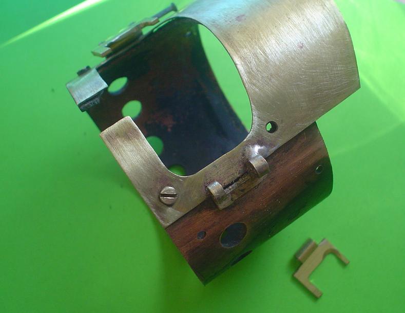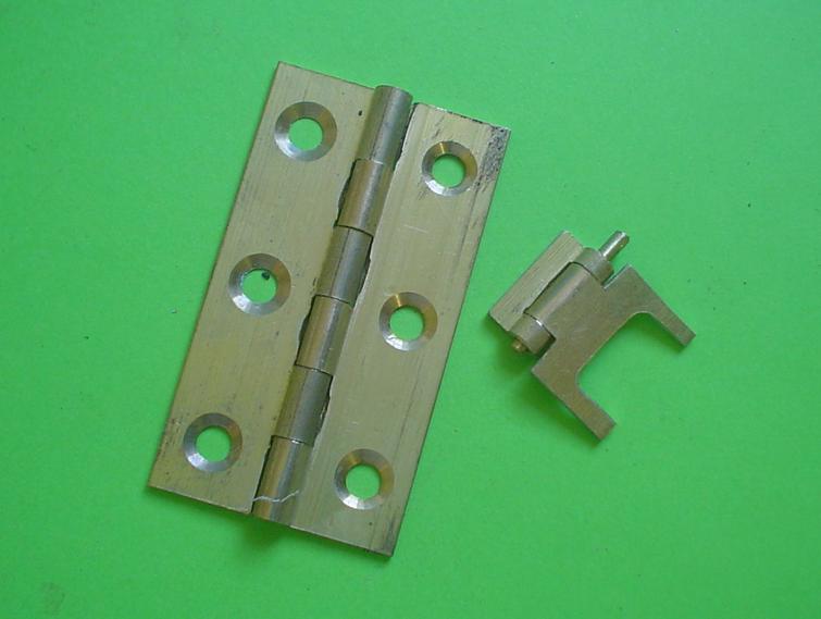 On utilise des charnières en laiton de 2 d'épaisseur pour fabriquer les paumelles. Les portes sont découpées dans de la tôle de laiton de 1 mm d'épaisseur. Brasure à l'argent. |