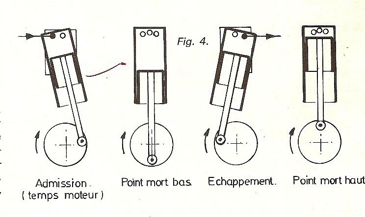 |  un petit complément | Une discussion récente sur le forum de Blooo montre que le principe de l'oscillant n'est pas toujours compris et, en me relisant, je me rends compte que mes explications doivent être complétées. On parle du cylindre et du piston qui s'y déplace mais on ne précise pas que deux mouvements sont conjugués : . le premier, un mouvement vertical, celui du piston, qui va se déplacer de bas en haut dans le cylindre, déplacement transmis par le maneton sur le volant de l'axe moteur et avec une course égale au déplacement de ce maneton . le second, un mouvement latéral ou oscillant autour d'un axe de rotation, transmis aussi par le piston quand il se déplace dans le cylindre, ce dernier étant son guide.