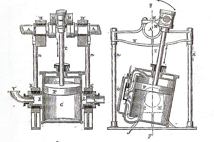 |  un peu de documentation rare sur les moteurs oscillants grâce à Paul FONLUPT | Les machines oscillantes sont caractérisées par la disposition du cylindre et on en rencontre 5 variétés : |