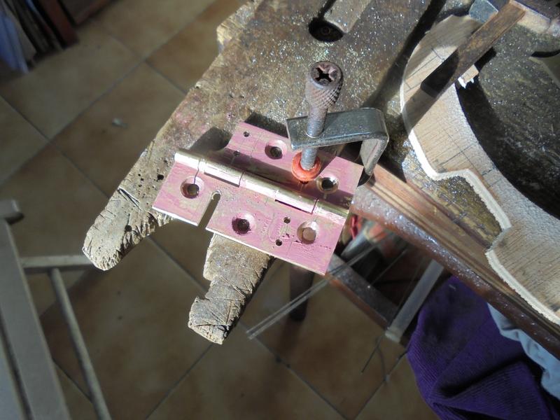 sont une nouvelle fois découpés dans une charnière en laiton de 2 mm d'épaisseur. Attention : il s'agit de laiton et non de métal doré, sinon on ne peut pas braser à l'argent !