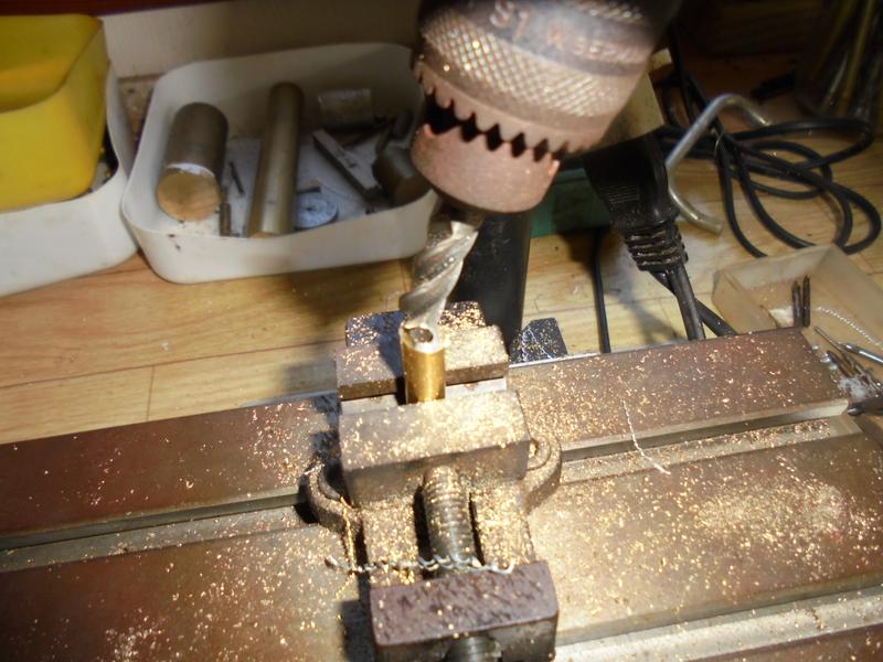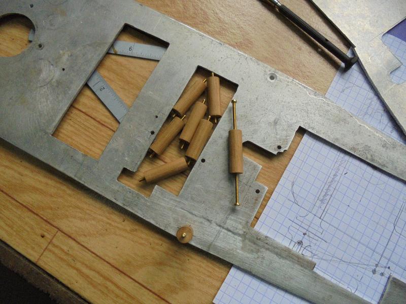 Les plots d'assemblage d'un diamètre de 8 ont une longueur de 25 mm : on le perce à chaque extrémité à 1.6, on y visse une vis M2 que l'on coupera ensuite à 5 mm. 9 plots sont en bois et le dernier en alu car il est situé près de du serpentin et qu'on va présenter à proximité la flamme pour l'allumage ...