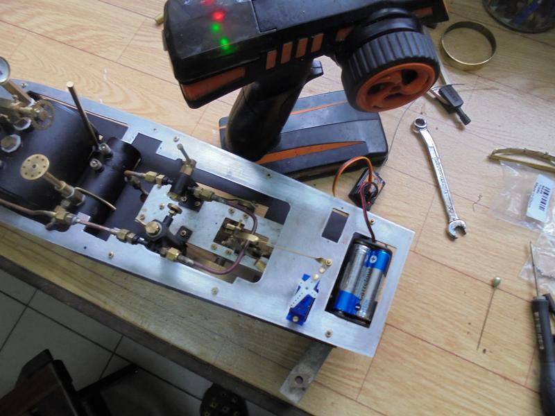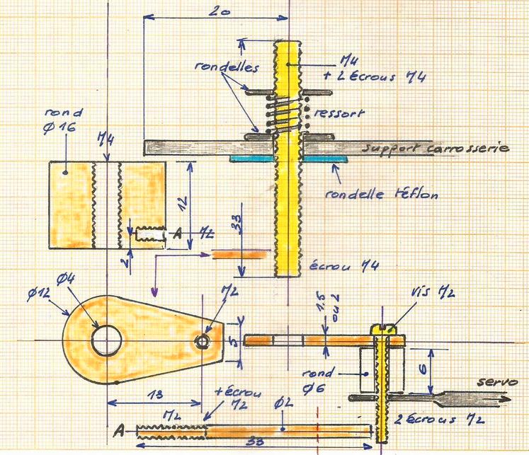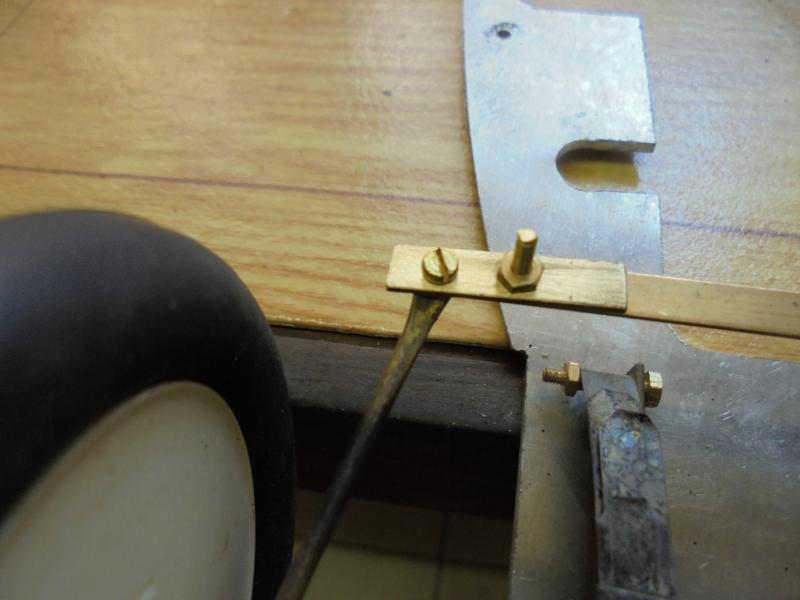 | Plus de facilité pour le réglage de la direction en allongeant la barrette de fixation de l'axe : laiton plat de 0.5 x 4.. |