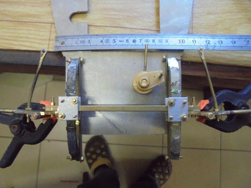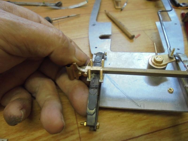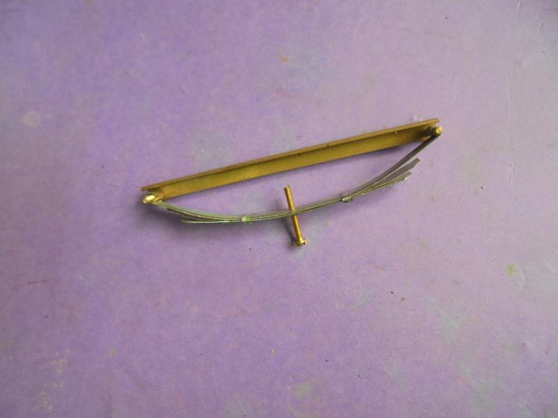 Elle est réalisée avec des lames en tôle de 0.3 environ ... Là aussi il faudrait commander du laiton de 0.5 x 6 beaucoup plus rigide ce qui éviterait un problème d'affaissement rencontré qu'il faudra régler au montage en modifiant la forme des biellettes.
