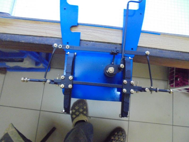 pour lesquelles je vais rencontrer un problème lors du montage car, à cause de l'écrasement (le véhicule va dépasser les 2 kg !) et les vis guidant le doigt vont venir toucher les lames ! Il va donc falloir les courber après recuit de la tige de laiton de 2 mm de diamètre.