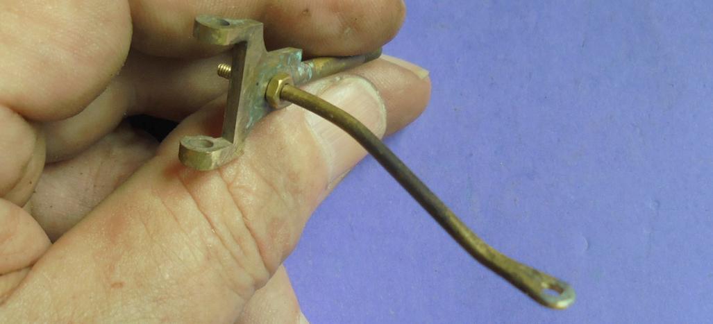 . Autre réglage rendu nécessaire pour le blocage de l'inverseur en position de marche avant : un plat de laiton que l'on recourbe sur une extrémité à la bonne hauteur du contact. |