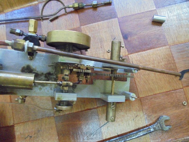 essai de l'inverseur | | Il n'a pas fonctionné du premier coup : j'avais oublié une découpe pour que la rue dentée de l'axe principal ne touche pas ... |