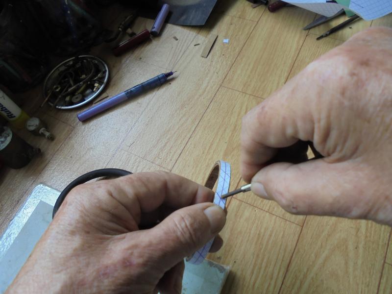 Pour les positionner on met en place le joint sur la jante. (1) la première bande est collée à la colle de menuisier