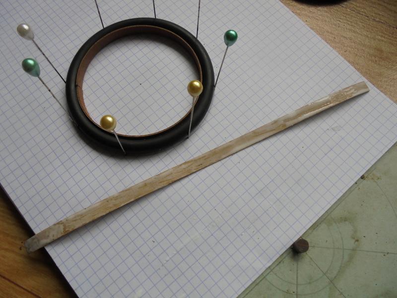 | Pour empêcher le pneu de s'échapper, deux bandes de 1 mm de large tirées du placage.