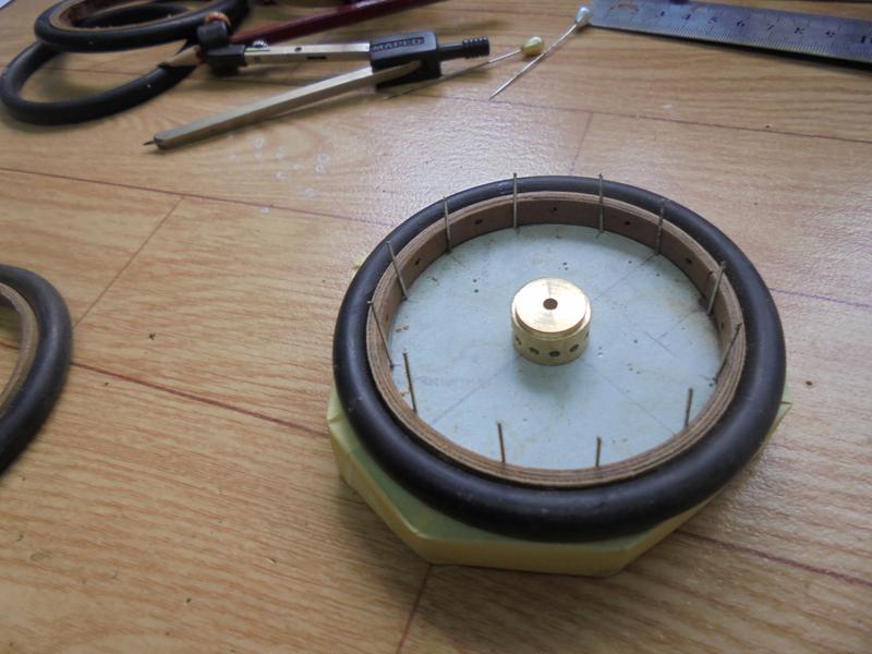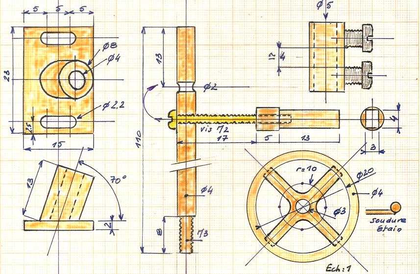 | Ils sont tirés d'un rond de laiton de diamètre 16 et, au diviseur on percera 12 trous de 2 d'une profondeur de 4,5.